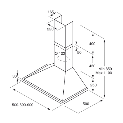 | AIRFLOW (ducting-out) | 360-500 m3/h |